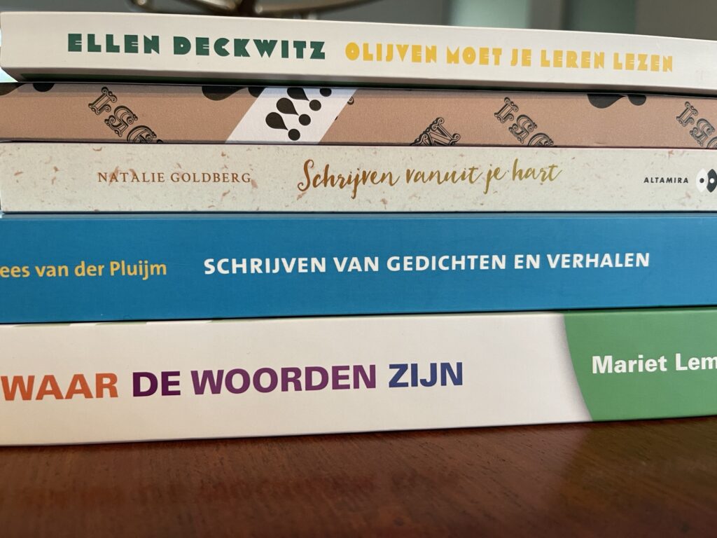 We doen wat we kunnen Thuis mist het stenen bruidsbed De rode loper langs het pad naar de tempel Zeg maar dat we niet thuis zijn Waar is onze moeder? Stapelgedichten zijn gedichten die je maakt door boeken op elkaar te stapelen. De titels vormen het gedicht. Witregels maak je door er een boek omgekeerd […]