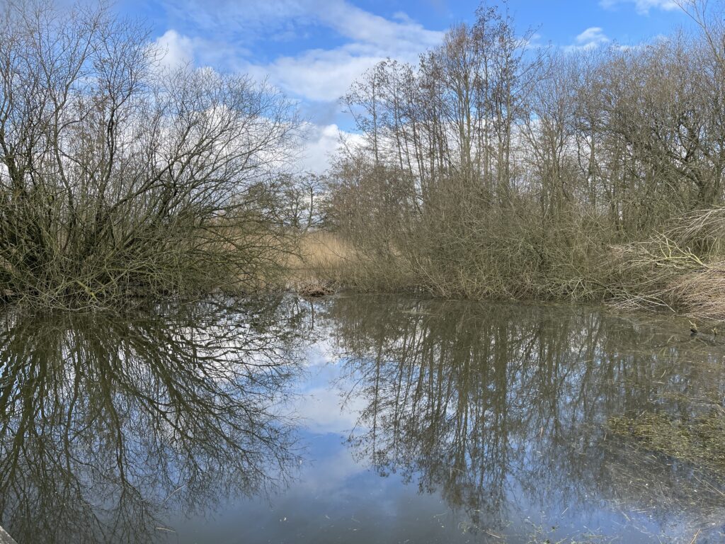 Spiegelingen in het kabbelende water Winterwind fluistert